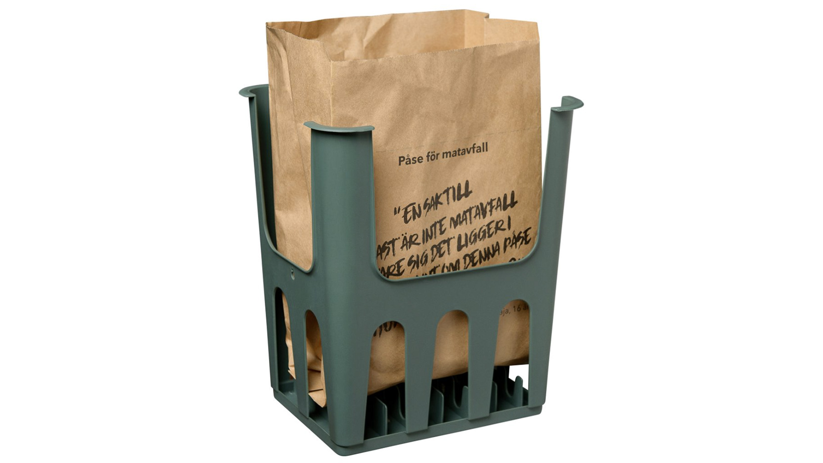 Säkerställ att alla har matavfallspåsar med hållare och se till att det är lätt att hämta nya påsar, t.ex. i återvinningsrummet om det finns ett sånt (se bild ovan som exempel).